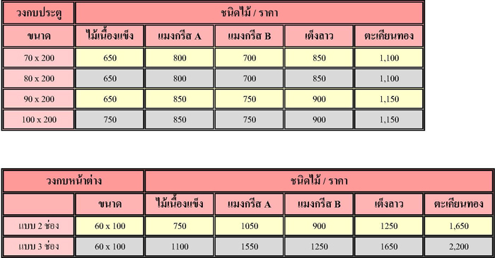 หมายเหตุ ราคาไม่รวมค่าขนส่ง